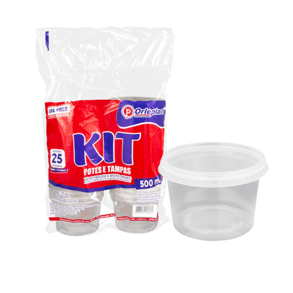 Pote 500ml Redondo com Tampa Orleplast (Caixa com 25 Unidades): Organização e Praticidade no Armazenamento
